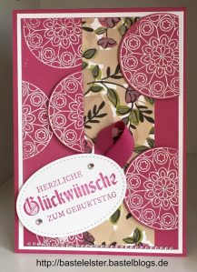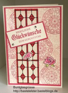 Zwei der Karten sind mit dem Designerpergament „Fantasie aus Glas“ entstanden, welche ich mit unseren „stampin’write Stiften vorher ausgemalt habe.