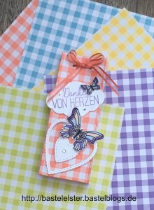 Diese Ratz, Fratz Tüten sehen mit jedem Desingerpapier toll aus und sind schnell gebastelt. Das Desingerpapier Gartenglück eignet sich dafür besonders gut. Wer dieses kleine Mitbringsel mal selbst basteln möchte, besucht einfach einen meiner Workshops. Der nächste Workshop findet übrigens am 15. Februar 2019 von 18:00 – 21:00 Uhr bei mir zu Hause statt. Bitte schnell anmelden.Die Plätze sind begrenzt.